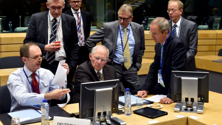 Σφιγμένα πρόσωπα, κινήσεις, μορφασμοί και στο κέντρο ο Σόιμπλε και οι σύμβουλοί του. Όσα λένε οι εικόνες μέσα από το Εurogroup.